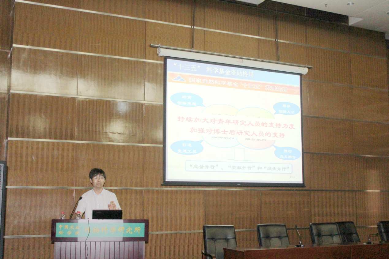 我院植物保护研究所科研管理处郑传临处长以申报国家自然科学基金为题应邀作了专题报告,他从国家科技计划改革的总体思路和方向目标入手,向大家详细阐述了国家自然科学基金的基本定位与资助格局,基金政策新变化新要求,以及2015年、2016年基金申请与资助总体情况,介绍了植物保护研究所近年来在基金申报方面的做法、经验和成效,分析了目前基金申报中存在的一些误区和问题,并就找准农业科学和科学基金的结合点提高基金立项率提出了6点建议。郑处长还结合自身实际体会,强调了充分的时间投入以及良好的道德底线对于学术和科研的重要性。