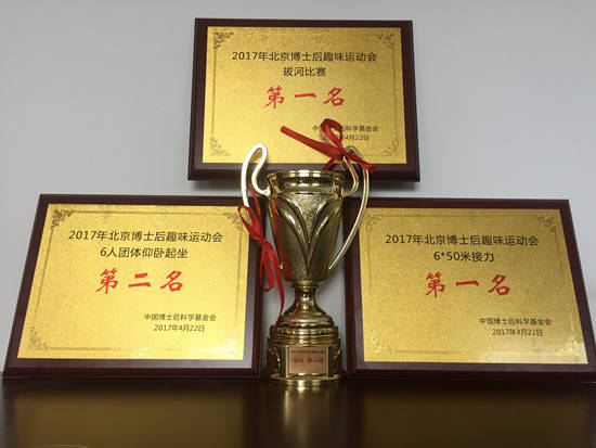 4月22日,由中国博士后科学基金会主办,北京博士后联谊会和北京体育大学承办的北京博士后趣味运动会在北京体育大学英东田径场举行。我院180余名博士后及家属参加了比赛,以历史最好成绩荣获团体总冠军,实现“四连冠”。