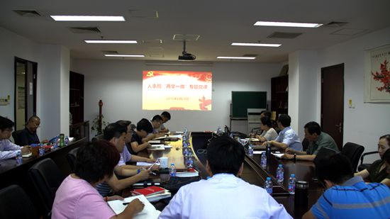 6月24日,人事局党支部召开“两学一做”专题教育学习研讨会,副局长李巨光同志以“关于深化人才发展体制机制改革的意见”为题作了专题党课报告,局党支部书记魏琦同志主持会议。